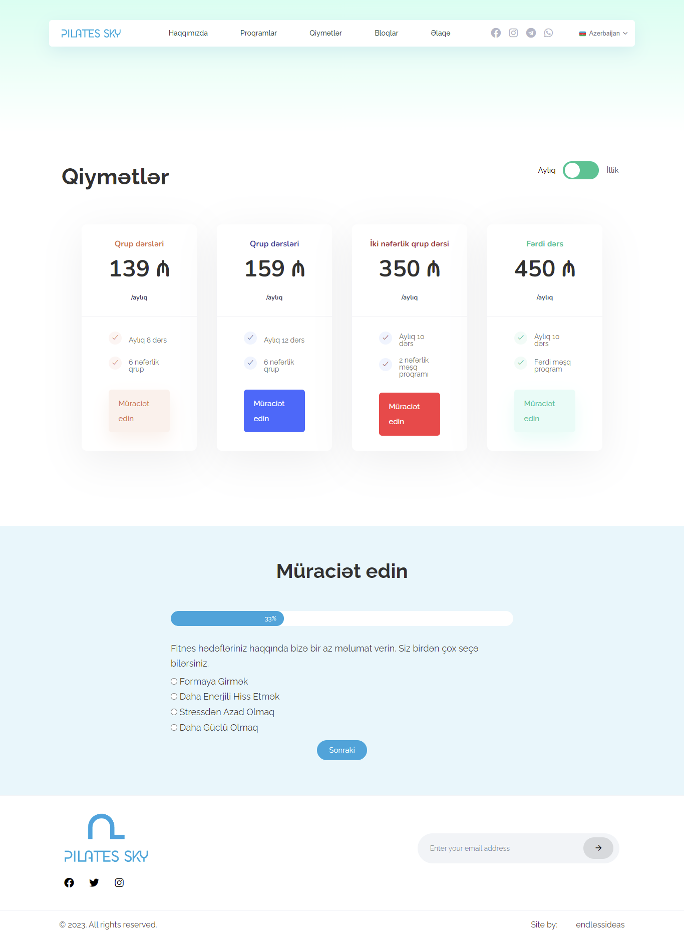 Pilates Sky üçün veb sayt